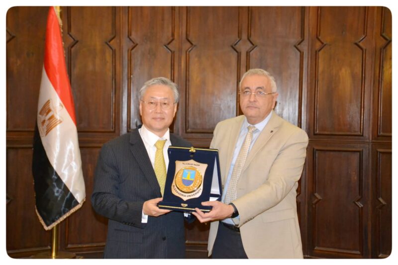 نيابة عن الدكتور عبد العزيز قنصوة رئيس جامعة الإسكندرية، إستقبل الدكتور سعيد علام نائب رئيس الجامعة لشئون خدمة المجتمع وتنمية البيئة، السيد/ كيم يونج يون سفير جمهورية كوريا الجنوبية بالقاهرة والوفد المرافق له، بهدف تطوير سبل التعاون الأكاديمي والثقافى بين الجانبين في الموضوعات ذات الاهتمام المشترك، وبحث إمكانية إنشاء معهد سيجونج لتعليم اللغة والثقافة الكورية الجنوبية بالتنسيق مع جامعة الإسكندرية.