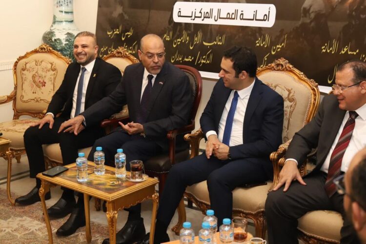 استقبل الدكتور محمد بدران، النائب الأول والأمين العام لحزب مصر أكتوبر، محمد جبران رئيس إتحاد عمال مصر، ومجدي البدوي المقرر المساعد للجنة النقابات والعمل الأهلى بالحوار الوطني، وعماد حمدي نائب رئيس اتحاد العمال ورئيس النقابة العامة للكيماويات، وخالد الفقى نائب رئيس اتحاد العمال ورئيس النقابة العامة للصناعات الهندسية، وبحضور عماد رشاد، أحمد كرم، روض الحنفي، الأمناء العام المساعدين بالحزب، وليد قوطة أمين التنظيم، رنا النطار أمين الشئون العربية المركزية، عمرو قرواش أمين مساعد العمل الجماهيري بالمركزية، محمد الأشقر رئيس قطاع وسط الدلتا، علاء ذكي أمين أمانة العمال المركزية، مصطفى كمال أمين مساعد أمانة العمال المركزية، محمد عادل عضو هيئة مكتب أمانة العمال المركزية، وأحمد ياسين سكرتير مكتب أمانة العمال المركزية.