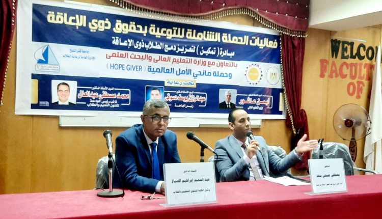 نظمت إدارة النشاط الاجتماعي والتكافل الاجتماعي بالإدارة العامة لرعاية الطلاب بجامعة كفرالشيخ ندوة توعوية بحقوق ذوي الهمم ضمن فعاليات الحملة الشاملة للتوعية بحقوق ذوي الهمم بالتعاون مع وزارة التعليم العالي والبحث العلمي وحملة مانحي الأمل العالمية.