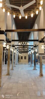 ويعد منبر المسجد تحفه خشبية حيث نفذ بطريقة الخرط والحشوات المتنوعة مزينة بالأشكال النجمية عليها النص التأسيسي للمسجد بخط النسخ.