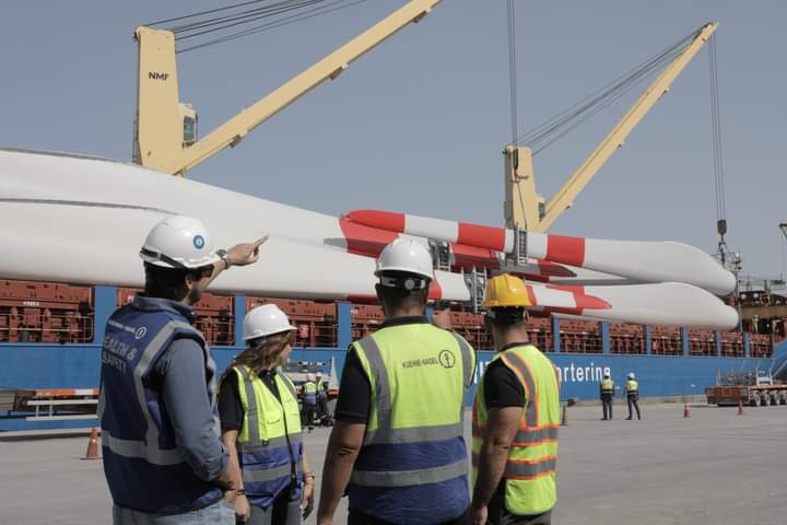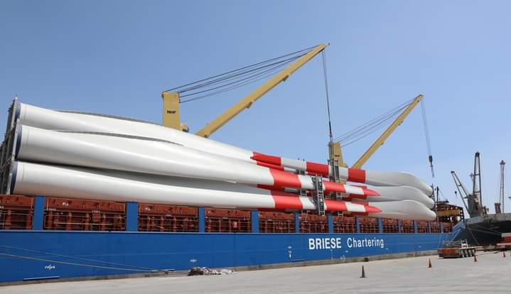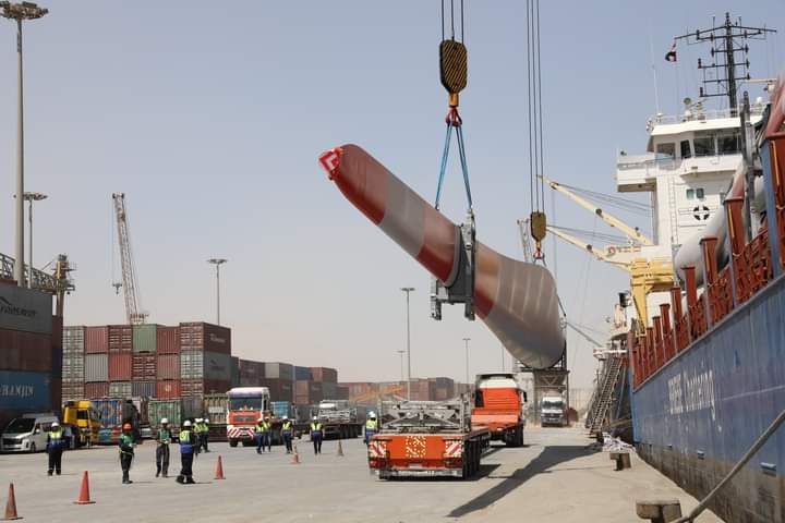 وقد استقبل الميناء السفينة القادمة من إيطاليا لتفريغ المعدات، لتصل عدد من شحنات توربينات الرياح تباعاً خلال الأيام المقبلة، لتركيبها في محطة توليد الطاقة بالرياح، لخدمة المشروعات التي ستتطلب الاستخدام الأمثل بالطاقة الجديدة والمتجددة، وقد قامت الميناء برفع درجة الاستعداد لإستقبال الشحنة وتهيئة وترتيب مسارات السير من الرصيف لساحات التخزين لحين خروجها لموقع التسليم بالمحطة، والتنسيق مع الجهات المعنية، وكذلك الشركة المتخصصة في نقل هذه المعدات.
