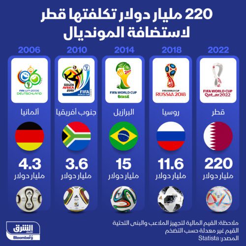 أعلنت الشرق للأخبار عن إصدار “مونديال الشرق المالي 2022” الذي تقدمه اقتصاد الشرق مع بلومبرغ، ويوضح بشكل مفصل اقتصاديات كأس العالم لكرة القدم خلال آخر 5 نسخ، في استمرار لسبق الشرق في تقديم التقارير المتخصصة بالاقتصاد الرياضي.