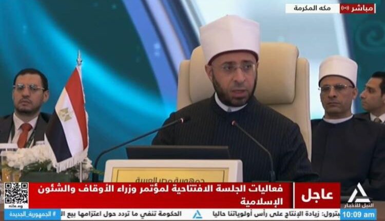 وقال الأزهري – في كلمته، خلال فعاليات الجلسة الافتتاحية لمؤتمر الأوقاف والشؤون الإسلامية بمكة المكرمة، اليوم /الأحد/ -:” لقد أتيت من أرض الكنانة مصر ومن شعبها الكريم ومن قيادتها الحكيمة ومن أزهرها الشريف محملا بخالص التحية والإجلال والتقدير للمملكة العربية السعودية ملكا وولي عهد وحكومة وشعبا ولسائر الحضور ولسائر بلادكم وأوطانكم العزيزة والغالية على قلوبنا”.