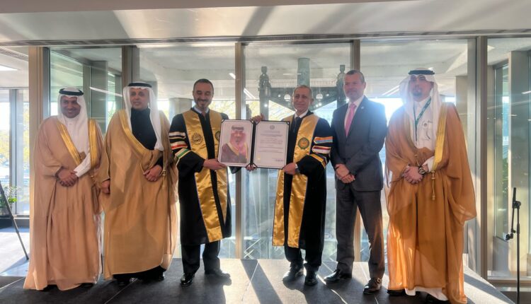شهد الأستاذ الدكتور إسماعيل عبد الغفار إسماعيل فرج رئيس الأكاديمية فعاليات حفل تسليم شهادة الدكتوراه الفخرية الممنوحة من الأكاديمية العربية للعلوم والتكنولوجيا والنقل البحري إلى الأمير خالد بن بندر بن سلطان آل سعود ، سفير خادم الحرمين الشريفين لدى المملكة المتحدة ورئيس جمعية المنظمة البحرية الدولية.