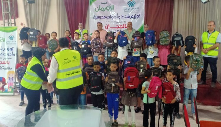 وزعت جمعية الأورمان بكفر الشيخ عدد الطلاب ١٥٠ شنطة مدرسية على طلاب المرحلة الابتدائية الغير قادرين تحت رعاية اللواء جمال نور الدين محافظ كفر الشيخ وتعليمات السيد مسلم وكيل وزارة التضامن الاجتماعي بكفرالشيخ