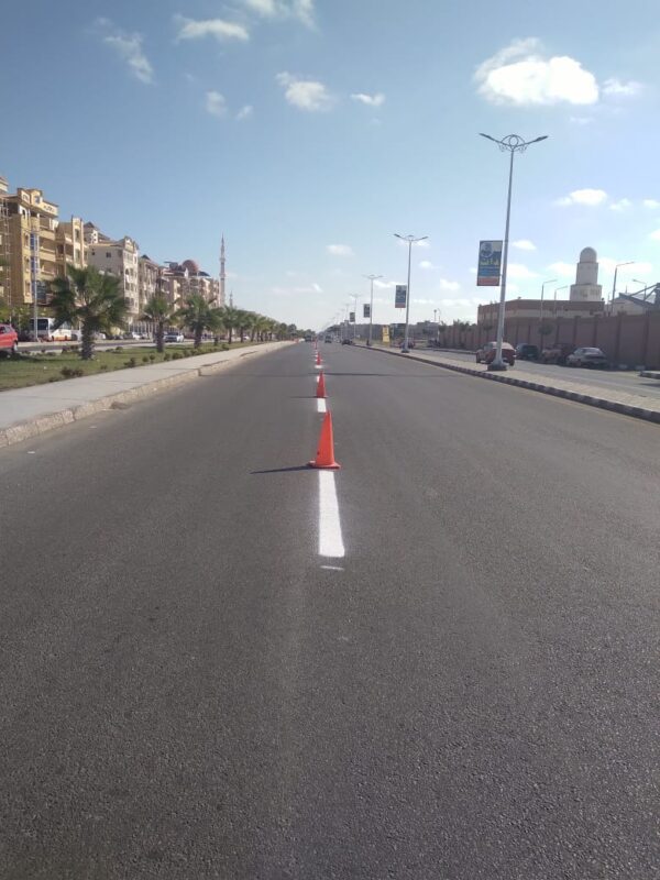 وفي سياق متصل، أشار المهندس محمد خلف الله، إلى أنه تم تنفيذ تخطيط الطرق الرئيسية، والمدخل الغربى والميادين بالمدينة، للسلامة المرورية، وتحديد خطوط واتجاهات السير، طبقا للكود المصرى لأعمال تخطيط الطرق.