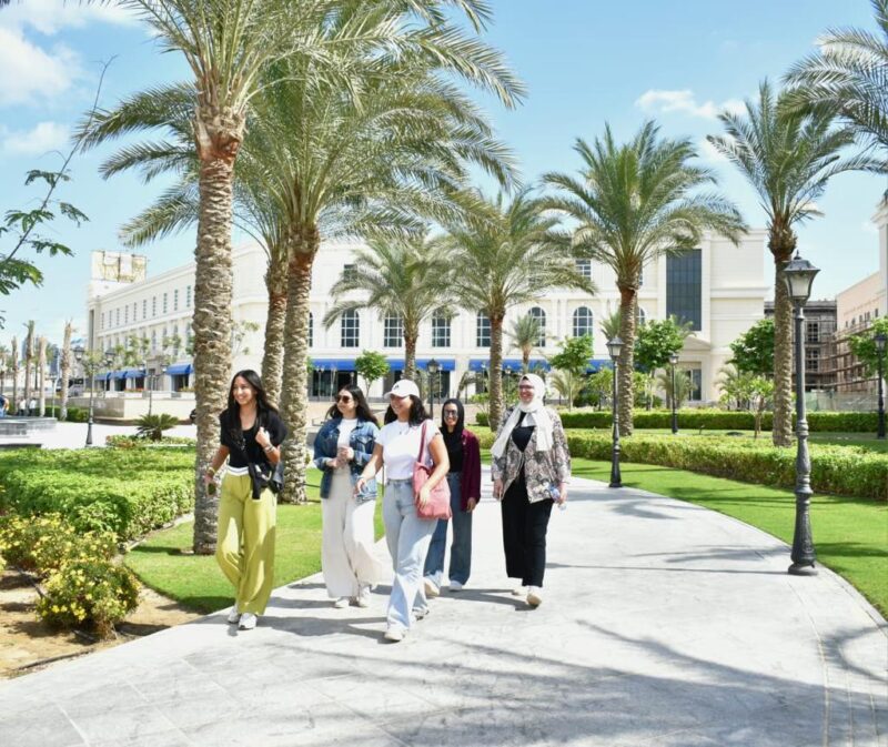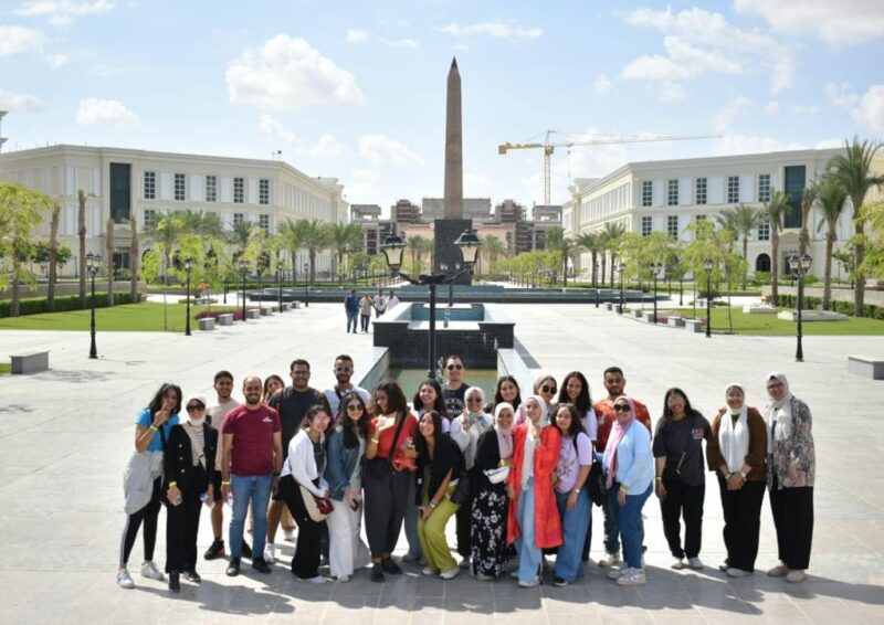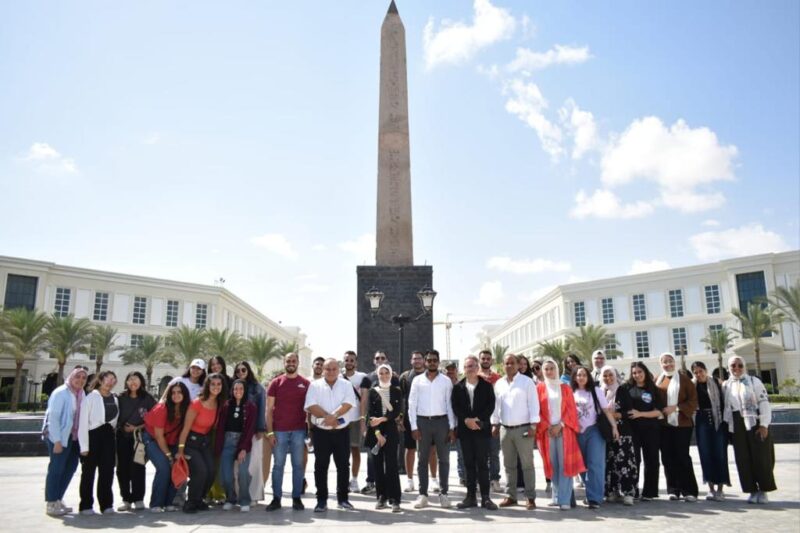 وتفقد وفد طلاب الجامعة الألمانية بالقاهرة، يرافقهم مسئولو الجهاز، أهم مشروعات مدينة العلمين الجديدة، والتي شملت معالم المدينة التراثية، حيث تضم منطقة البلازا الرئيسية يتوسطها ميدان به مسلة فرعونية وعلى الجانبين محال تجارية، بجانب المسجد التراثي والكنيسة، ومجمع السينمات، والمسرح الروماني، والأوبرا، وغير ذلك من المعالم التراثية، كما شملت الجولة جانبا من منطقة الأبراج، والمنطقة الترفيهية، وتم تقديم شرح واف عن المناطق التي تم تفقدها وفرص العمل التى توفرها، وأهم ما تتميز به تلك المشروعات، وما بدأ تشغيله منها، والتوقيتات الزمنية لتنفيذ الباقى.