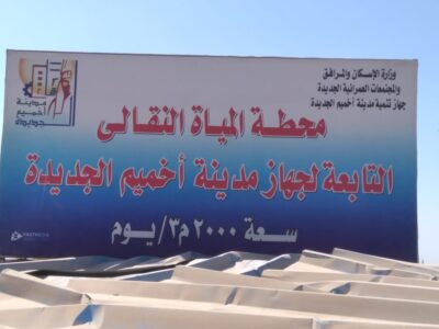 وفي سياق متصل، قام رئيس جهاز مدينة أخميم الجديدة، بتفقد مشروع أعمال تشغيل وصيانة محطة تنقية المياه النقالي، والخط الناقل للمياه، ومحطة الرفع ” البوستر “، موضحاً أن المحطة تم إنشاؤها على مسطح ٢٥٠٠ متر مربع، والطاقة التصميمية للمحطة ٢٠٠٠ م3/ يوم.