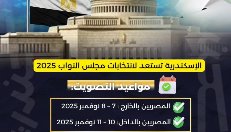 تعلن محافظة الإسكندرية رفع درجة الاستعداد القصوى في جميع الأجهزة التنفيذية والأحياء والمديريات، استعدادًا لانطلاق انتخابات مجلس النواب 2025 ضمن محافظات المرحلة الأولى، وذلك تنفيذًا لقرار الهيئة الوطنية للانتخابات رقم (37) لسنة 2025 بدعوة المواطنين للمشاركة في هذا الاستحقاق الدستوري الهام.