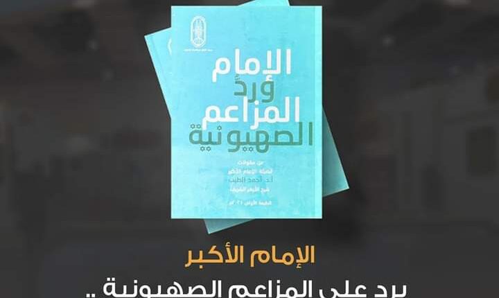 يقدِّم جناح الأزهر الشريف بـمعرِض القاهرة الدولي للكتاب في دورته الـ 55 لزوَّاره كتاب “الإمام ورد المزاعم الصهيونية” من إصدارات مرصد الأزهر يقدم توثيقًا لمقولات فضيلة الإمام الأكبر أ. د أحمد الطيب شيخ الأزهر الشريف في صورة ردود على المزاعم الصهيونيَّة من أجل التعريف الموجز بأهم الشبهات المثارة حول القضية الفلسطينية ورد فضيلته عليها؛ تخليدًا لهذه الردود في ذاكرة الأمة الإسلامية والعالم أجمع.