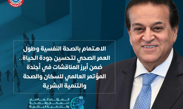 أكدت وزارة الصحة والسكان أن الاهتمام بالصحة النفسية وطول العمر الصحي يأتيان ضمن أبرز الموضوعات التي ستتناولها أجندة المؤتمر العالمي للسكان والصحة والتنمية البشرية في نسخته الثالثة هذا العام، باعتبارهما من أهم القضايا المرتبطة بتحسين جودة الحياة وتحقيق أهداف التنمية المستدامة.