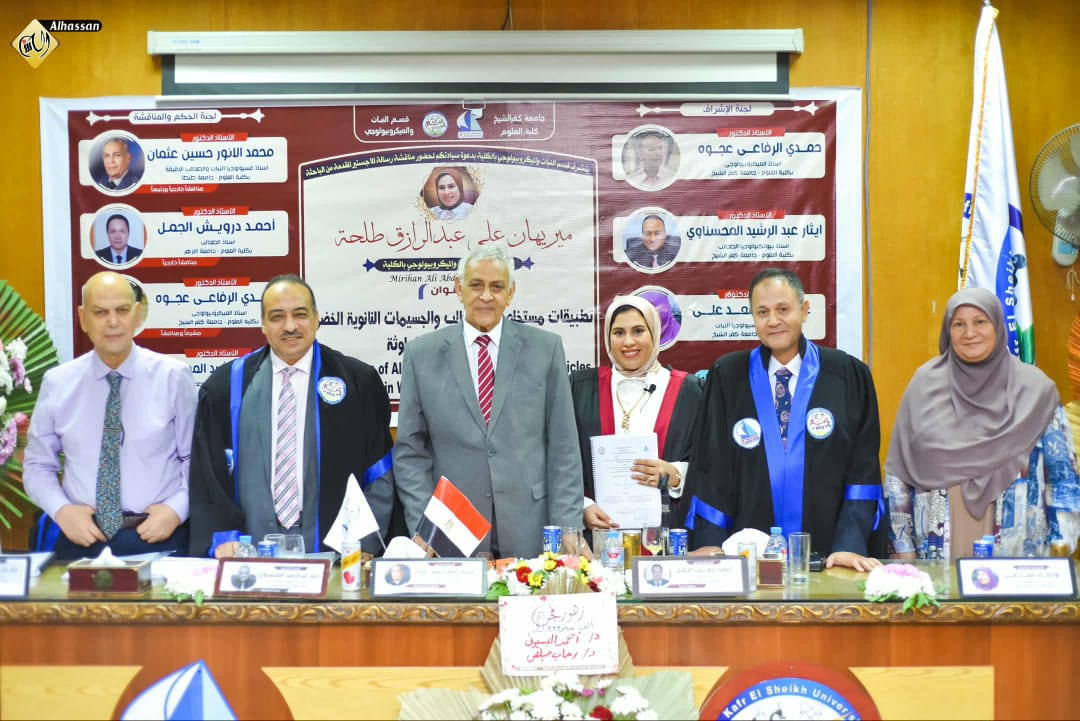 منحت كلية العلوم بجامعة كفر الشيخ الباحثة ميريهان علي طلحة المعيدة بقسم النبات والميكروبيولوجي بالكلية درجة الماجستير، حول دراسة علمية ناقشت فيها تطبيق مستخلصات الطحالب والجسيمات النانوية الخضراء لمعالجة المياه الملوّثة، وذلك في إطار الجهود البحثية الرامية إلى حماية البيئة ومعالجة المياه الملوّثة بمحافظة كفر الشيخ.