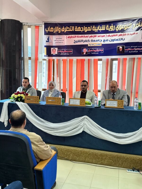 نظمت الإدارة العامة لرعاية الطلاب بجامعة كفر الشيخ البرنامج التوعوي «رؤية شبابية لمواجهة التطرف والإرهاب» بالتعاون مع مشيخة الأزهر الشريف وعقد على مدار يومين يكليتي التربية والثروة السمكية وعلوم المصايد.