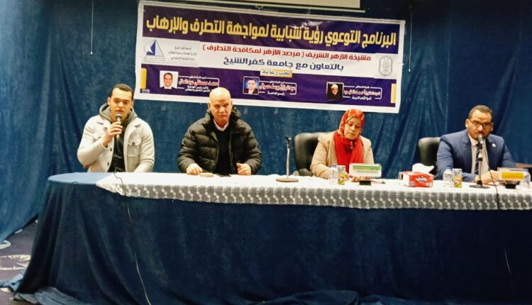 نظمت الإدارة العامة لرعاية الطلاب بجامعة كفر الشيخ البرنامج التوعوي «رؤية شبابية لمواجهة التطرف والإرهاب» بالتعاون مع مشيخة الأزهر الشريف وعقد على مدار يومين يكليتي التربية والثروة السمكية وعلوم المصايد.