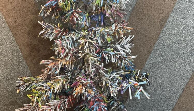 “شجرة الكريسماس” قدمها فريق التوعية بمناسبة أعياد رأس السنة من مكونات صديقة للبيئة من المخلفات المنزلية من ورق الجرائد، والكرتون، والفويل، والخشب، وجردل بلاستيك، وذلك لتحقيق منظر جمالي في المنزل وتوفير التكلفة المرتفعة لأشجار الكريسماس