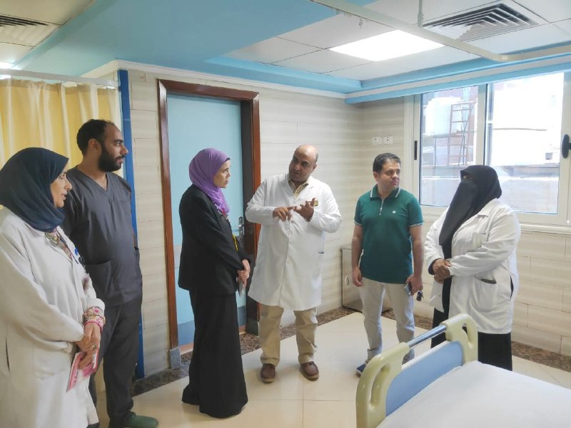 حيث عقد الدكتوراحمد سـالم مدير عام المستشفى اجتماعا موسعا ضم كلا من الدكتور محمد شلتوت (رئيس الاقسام العلاجية والدكتور رضا يس رئيس قسم الباطنة الدكتور قدرى غانم رئيس قسم القسطرة القلبية