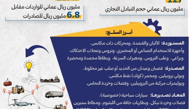 وسجّل حجم التبادل التجاري بين سلطنة عمان ومملكة بلجيكا خلال العام الجاري من يناير حتى نهاية يوليو 2024 أكثر من 127 مليون ريال عماني، وبلغت الواردات 117.7 مليون ريال عماني مقابل 6.8 مليون ريال عماني للصادرات.