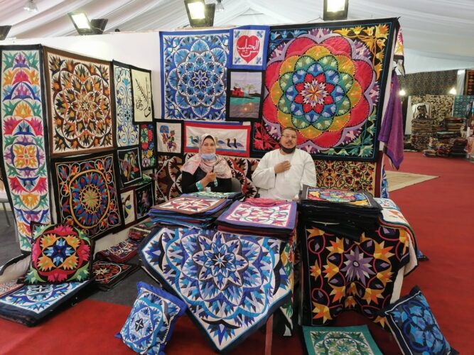 ويضم المعرض منتجات تراثية يدوية من الخزف والمفروشات والسجاد والكليم والنحاس والصدف والخيامية والمفروشات والاكسسوارات الحريمي والمنزلي، وكروشيه ولوحات فنية، ومنتجات الألباستر، ومنتجات جلدية، وخوص ومنتجات غذائية، ومنتجات تجميل وعناية بالبشرة، والزي السيناوي ،بالإضافة إلى المنتجات التى تمير محافظات« قنا-سوهاج- أسوان- الأقصر»
