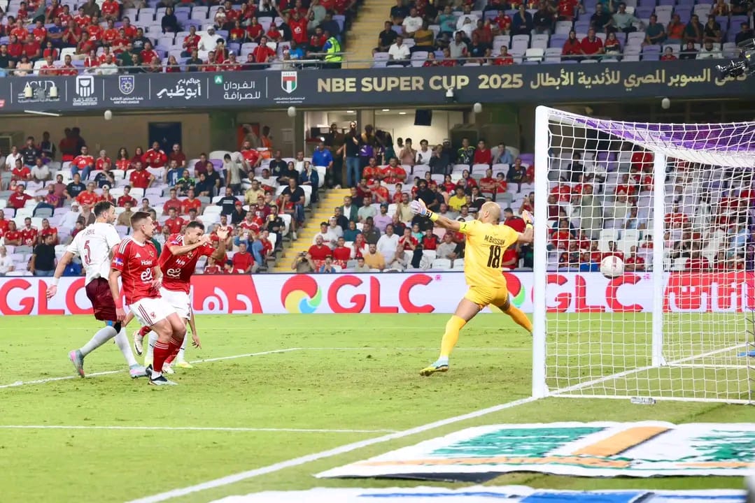 انتهت أحداث الشوط الأول بين النادي الأهلي ونظيره سيراميكا كليوباترا، بالتعادل الإيجابي بهدف لكل فريق، وذلك في إطار منافسات نصف نهائي كأس السوبر المصري، الذي يقام على استاد هزاع بن زايد.