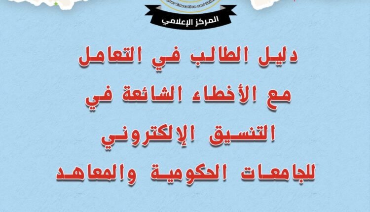 وتُهيب وزارة التعليم العالي بوسائل الإعلام المختلفة، نشر الأدلة الإرشادية والوسائل التوضيحية للطلاب؛ لتعريفهم بها خلال فترة التنسيق الإلكتروني للجامعات الحكومية والمعاهد.