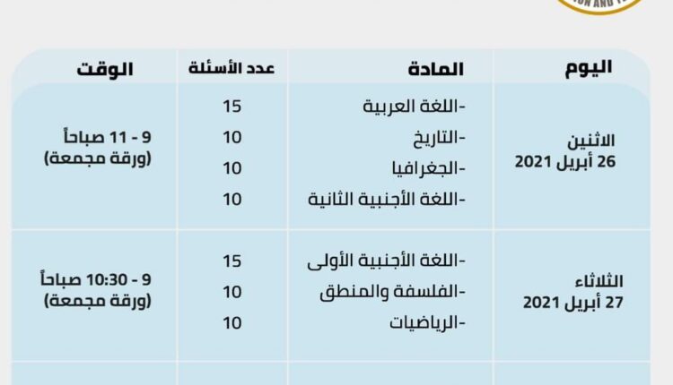 واليكم الجداول المقررة حسب الكتاب الدوري رقم 9  للعام الدراسي 2020  / 2021 :