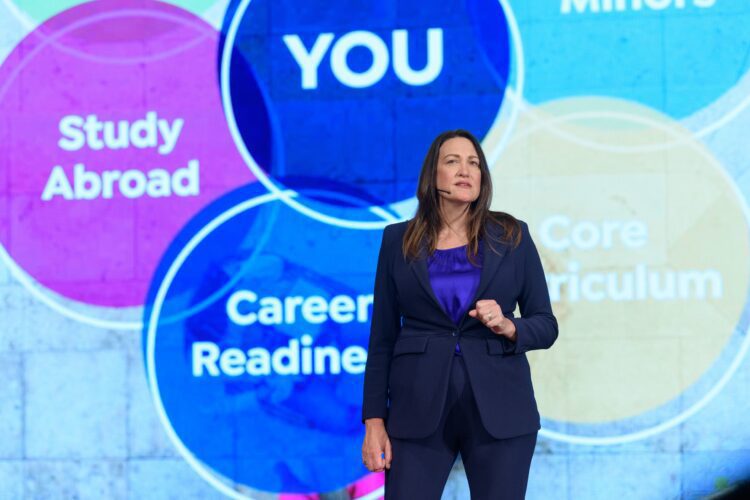 في كلمتها الترحيبية بالطلاب وأولياء أمورهم بقاعة باسيلي بحرم الجامعة في القاهرة الجديدة، تحدثت جيليان كامبانا، العميد المشارك بكلية العلوم الإنسانية والاجتماعية والأستاذة بقسم الفنون بالجامعة، عن الفرص المختلفة المتاحة للطلاب من تخصصات متنوعة وجديدة وأنشطة طلابية ثرية وفرص التبادل الطلابي والدراسة بالخارج. كما ركزت كامبانا على تميز التعليم المعتمد على النهج الليبرالي الذي يشجع الطلاب على التفكير بشكل نقدي وتحليلي لإيجاد حلول مبتكرة للمشكلات والتحديات التي تواجه المنطقة والعالم. قالت كامبانا: “هذا هو ما يميز الجامعة الأمريكية بالقاهرة وهو أيضا ما يميز خريجينا لأن التعليم الليبرالي يسعى إلى تخريج قادة، كما أنه في عالمنا الحالي يجب أن يكون للطالب القدرة على القيام بعدة مهام في آن واحد، فمن المحتمل أن يكون لدى كل فرد أكثر من مهنة واحدة في حياته وقد تكون مهنة مستقبلية جديدة لا توجد بعد، لذا فإن دراسة الطلاب الجدد لمجموعة متنوعة من المواد المختلفة يساعدهم على استكشاف الأفكار من وجهات نظر متعددة.”