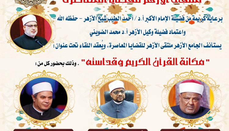 الجامع الأزهر يناقش مكانة القرآن الكريم وقداسته في الملتقى الفكري الأسبوعي..الثلاثاء