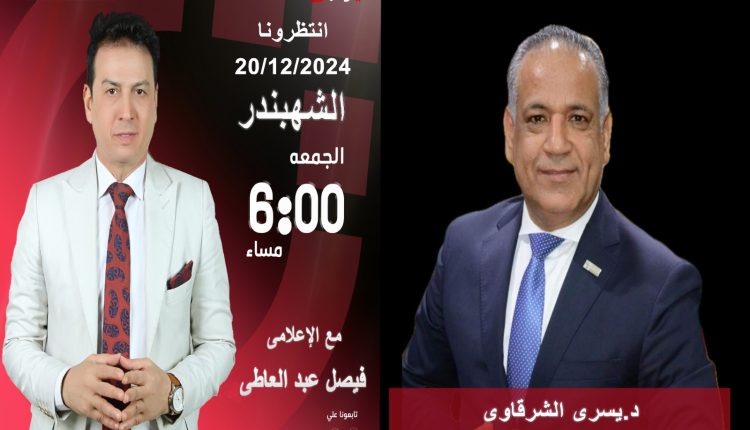 يستضيف برنامج الشهبندر المُذاع على قناة الحدث اليوم الفضائية تقديم الإعلامي فيصل عبد العاطي خلال حلقة بعد غدٍ الجمعة 20-12-2024 في تمام الساعة السادسة مساءً الدكتور يسري الشرقاوي رئيس جمعية رجال الأعمال المصريين الأفارقة للكشف عن أهم المحاور وحصاد لنشاط الجمعية خلال عام 2024 .