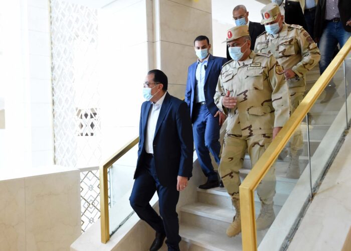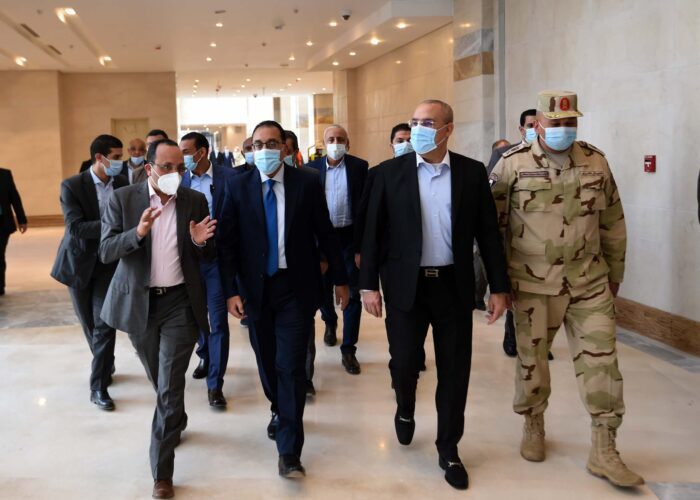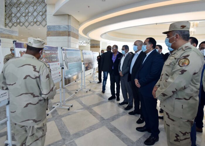 واستمع رئيس الوزراء من مسئولي الهيئة الهندسية إلى شرح حول موقف تنفيذ الحي الحكومي بالعاصمة الإدارية الجديدة، حيث تمت الإشارة الى اكتمال المباني بنسبة 100% وتم تسليم المقار، ويتم استكمال أعمال الواجهات، والأعمال الكهروميكانيكية، وتنسيق الموقع، حيث قارب الحي على الإنتهاء.