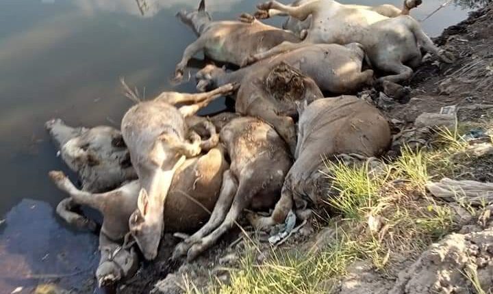 وقام بعض المزارعين الذين تعرضت مواشيهم لللنفوق لنقلها والقائها علي جسر بحر شبين بصوره أصابت المزارعين ومربي المواشي بالفزع.