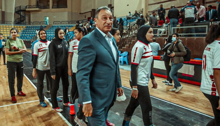الخطيب يصافح لاعبات «يد الزمالك» بعد تتويج الأهلي بكأس مصر