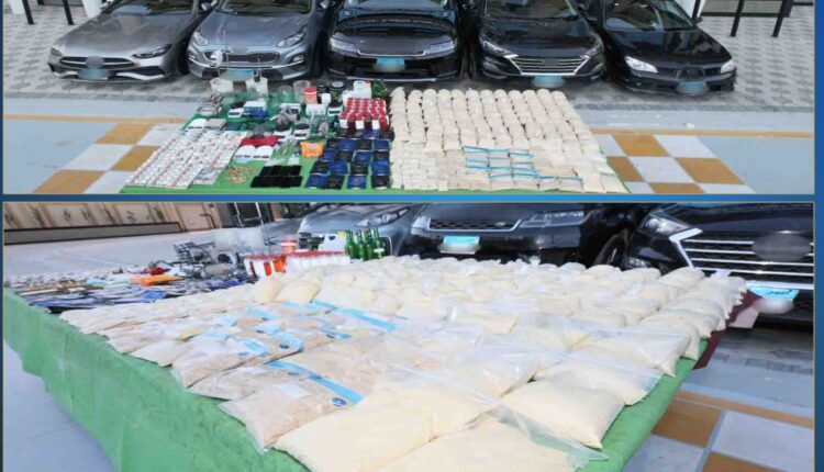 عقب تقنين الإجراءات تم ضبط عناصر التشكيل، وبحوزتهم كمية كبيرة من مخدر الحشيش الاصطناعى بلغت 200 كيلو جرام  المواد الخام والآلات والأدوات المستخدمة فى خلط وتهيئة المواد المخدرة، وكذا (كمية من المشغولات الذهبية – مبالغ مالية “عملات محلية وأجنبية” – 5 سيارات) من متحصلات نشاطهم الإجرامى.
