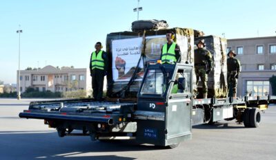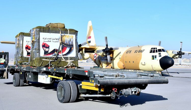 نفذت عدد من طائرات النقل العسكرية التابعة للقوات الجوية المصرية بالتعاون مع عدد من الدول الشقيقة والصديقة أعمال الإسقاط الجوى لأطنان من المساعدات الإنسانية ومعونات الإغاثة العاجلة بالمناطق المتضررة بشمال قطاع غزة .