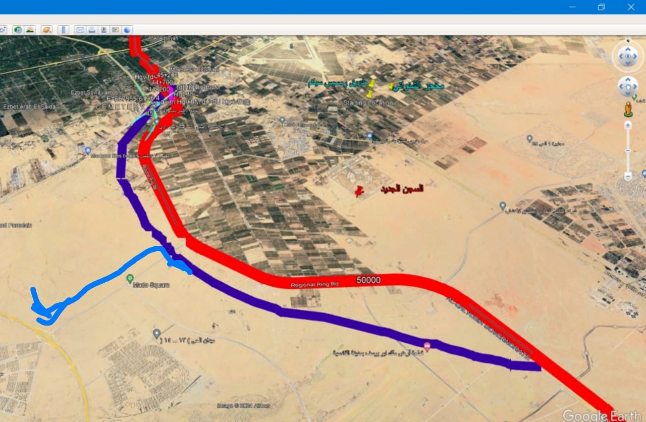 ونحن المتضررين لان اللى بعدنا صحراء لكن فيه بعض من الفلاحين عندهم قطع صغيرة فدان او نص فدان، فدانين تبع جمعية السلام الزراعية وهؤلاء سوف يكون الضرر اكبر لان منهم من يفقد ارضه كلها والمسار البديل غرب الطريق الاقليمى افضل بكثير حيث يخدم اربع طرق كباررئيسية هما طريق الاسماعيلية و بلبيس والطريق الاوسطى واقليمى ولكن الطريق المخطط سيخدم طريق واحد هو الاسماعيلية سيعمل قيمة تنافسية افضل و هناك اكتر من الحل
