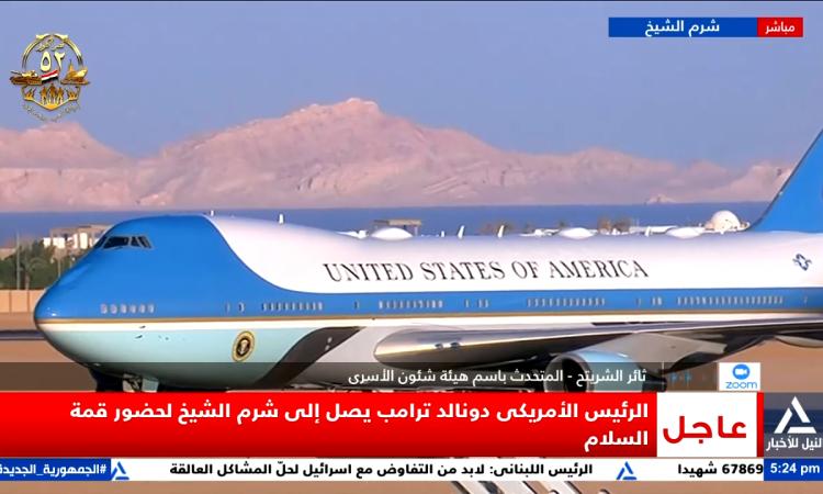 وصل الرئيس الأمريكى دونالد ترامب، مطار شرم الشيخ الدولي، للمشاركة فى «قمة شرم الشيخ للسلام».