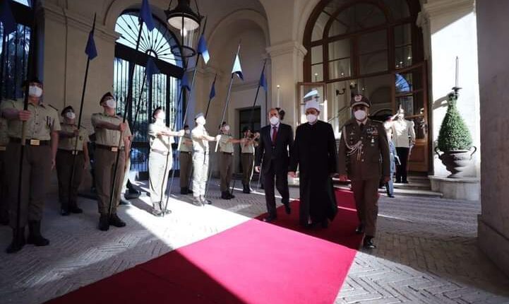 وأضاف الرئيس الإيطالي أنه اطلع على رسالة البابا فرنسيس “كلنا أخوة” ولفت انتباهه ما كتبه البابا من أن شيخ الأزهر كان مصدر إلهامه لكتابة هذه الرسالة العالمية، مؤكدًا أن ظهور الإمام الطيب والبابا فرنسيس في أثناء توقيع وثيقة الأخوة الإنسانية في أبوظبي 2019 بعث السعادة في قلوب الملايين حول العالم، وأحيا الأمل في عالم يسوده الحب وروح الأخوة.