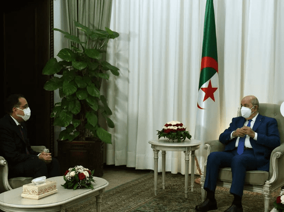 استقبل الرئيس الجزائرى، عبد المجيد تبون، اليوم بقصر الرئاسة، الدكتور مصطفى مدبولى، رئيس مجلس الوزراء، بحضور أيمن بن عبد الرحمان، الوزير الأول للجمهورية الجزائرية، والدكتورة رانيا المشاط، وزيرة التعاون الدولى، والسفير مختار وريدة، سفير مصر لدى الجزائر.