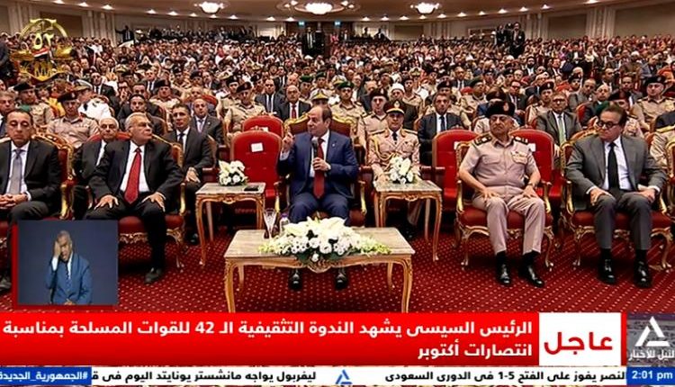 جاء ذلك خلال الندوة التثقيفية الثانية والأربعين 42 التي تنظمها القوات المسلحة اليوم الأحد بمناسبة الذكرى الثانية والخمسين 52 لانتصارات أكتوبر المجيدة.