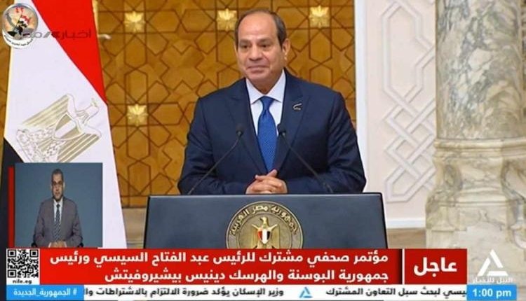 وأضاف الرئيس – خلال مؤتمر صحفي مشترك للرئيس السيسي ورئيس جمهورية البوسنة الهرسك دينيس بيشيروفيتش – أننا نعمل على مواصلة تعزيز العلاقات بين البلدين واستمرار التعاون المشترك.
