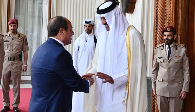 قام الرئيس عبد الفتاح السيسي، والأمير تميم بن حمد آل ثاني، أمير دولة قطر، اليوم الإثنين، برئاسة اجتماعاً موسعاً في الديوان الأميري بالعاصمة القطرية الدوحة، ضم وفدي البلدين، أعقبه جلسة مباحثات ثنائية بين الزعيمين، حيث رحّب سمو الأمير بزيارة الرئيس، مؤكداً أنها تمثل تتويجاً للزخم المتنامي في العلاقات الثنائية بين البلدين الشقيقين.