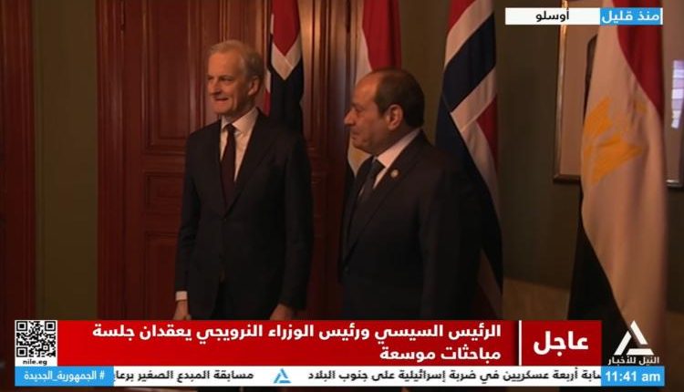 عقد الرئيس عبد الفتاح السيسي ورئيس الوزراء النرويجي يوناس جار ستور، اليوم الاثنين، جلسة مباحثات موسعة بحضور أعضاء وفدي البلدين.