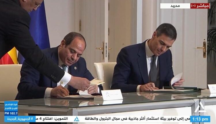 وقع الرئيس عبد الفتاح السيسي ورئيس وزراء اسبانيا بيدرو سانشيز اليوم الأربعاء الإعلان المشترك لترفيع العلاقات المصرية الإسبانية إلى مستوى “الشراكة الاستراتيجية”.
