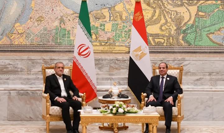التقى الرئيس عبد الفتاح السيسي، اليوم، بالرئيس “مسعود بزشكيان” رئيس الجمهورية الإسلامية الإيرانية، وذلك على هامش قمة الدول الثماني النامية للتعاون الاقتصادي، التي تعقد بالعاصمة الإدارية الجديدة.