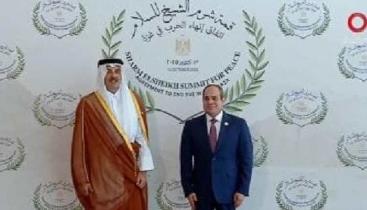 استقبل الرئيس عبد الفتاح السيسى، أمير قطر تميم بن حمد فور وصوله للمشاركة بقمة شرم الشيخ للسلام.