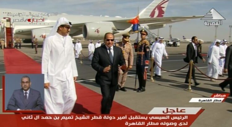 الرئيس السيسي يستقبل الشيخ تميم بن حمد آل ثاني أمير قطر أخبار مصرExclusive في الجمعة, 10 نوفمبر , 2023, الساعة 11:00 ت القاهرة شارك المقالة قد يهمك ايضاً: مليون و٣٧٥ الف و٧٠٠ ناخبا بسوهاج مدعوين غدا للإدلاء بأصواتهم… الأحد, 9 نوفمبر , 2025, الساعة 23:59 ت القاهرة إصابات تضرب معسكر منتخب مصر.. طاهر ودونجا بديلان لعادل… الأحد, 9 نوفمبر , 2025, الساعة 23:46 ت القاهرة استقبل الرئيس عبدالفتاح السيسي، اليوم الجمعة أمير دولة قطر، الشيخ تميم بن حمد آل ثاني، بمطار القاهرة الدولي. ومن المقرر أن يعقد الزعيمان مباحثات هامة، قبل يوم من انعقاد القمة العربية الطارئة في الرياض; لمناقشة الأزمة الفلسطينية الراهنة. شارك المقالة FacebookTwitterPinterestFacebook MessengerTelegramWhatsAppالبريد الإلكترونيPrint
