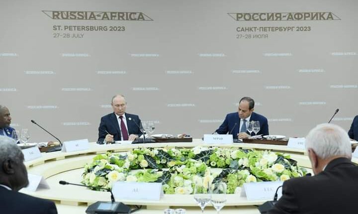 شارك الرئيس عبد الفتاح السيسي اليوم، بمدينة سان بطرسبرج، في غداء عمل مع الرئيس الروسي فلاديمير بوتين، وذلك إلى جانب رؤساء الدول والحكومات الأفارقة من رؤساء التجمعات الاقتصادية الأفريقية المختلفة.