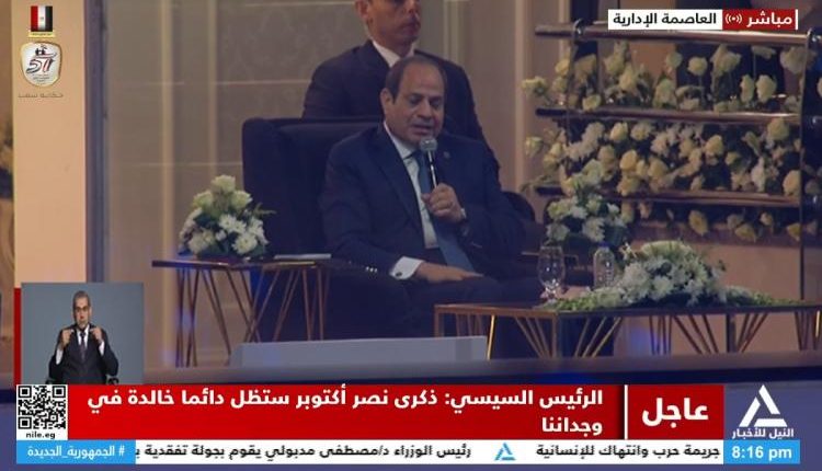 وقال الرئيس السيسي بمناسبة 51 سنة على نصر أكتوبر، مصر هتفضل دايما خالدة في وجدانا.