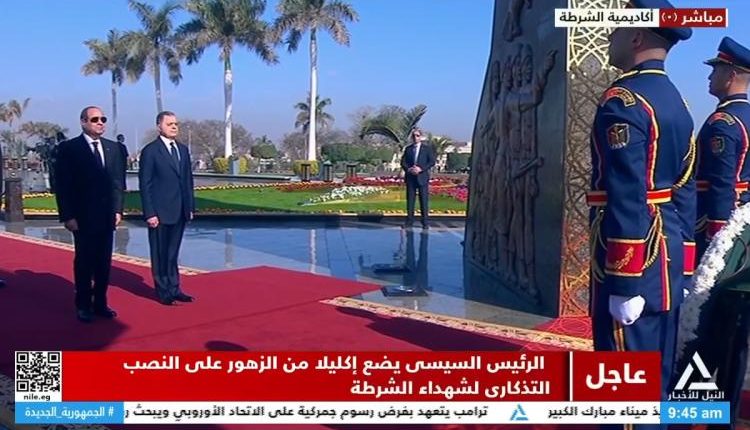 الرئيس السيسي يضع إكليلا من الزهور على النصب التذكاري لشهداء الشرطة Exclusiveأخبار مصر في الأربعاء, 22 يناير , 2025, الساعة 11:01 ت القاهرة شارك المقالة قد يهمك ايضاً: موعد مباراه ليفربول ضد ريال مدريد اليوم الثلاثاء في دوري… الثلاثاء, 4 نوفمبر , 2025, الساعة 08:19 ت القاهرة موعد مباراه منتخب مصر للشباب تحت 17 سنه والقنوات الناقلة الثلاثاء, 4 نوفمبر , 2025, الساعة 08:02 ت القاهرة شارك الرئيس عبد الفتاح السيسي، في وضع إكليل من الزهور على النصب التذكاري بأكاديمية الشرطة قبل بدء الاحتفال بعيد الشرطة الـ73. وتحتفل مصر يوم 25 يناير من كل عام بعيد الشرطة . شارك المقالة FacebookTwitterPinterestFacebook MessengerTelegramWhatsAppالبريد الإلكترونيPrint