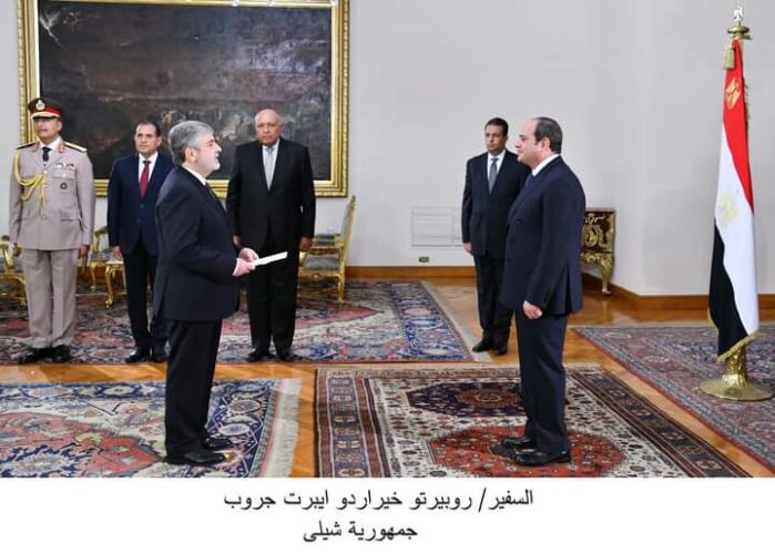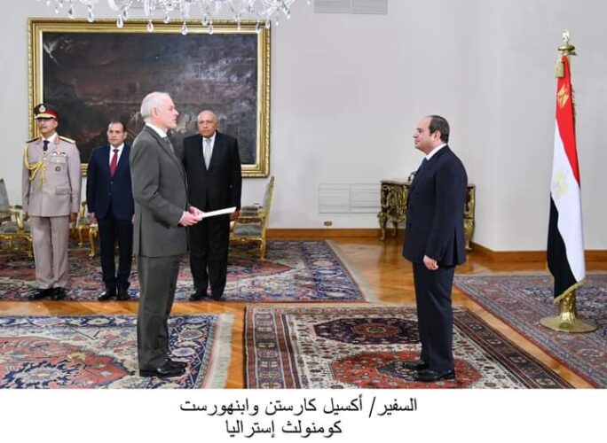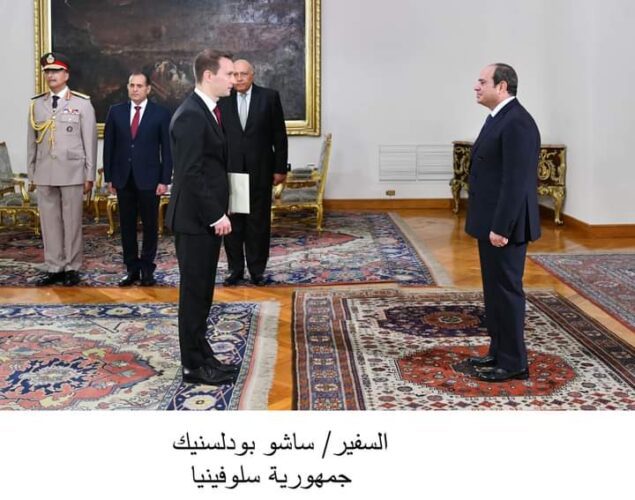 وصرح المُتحدث الرسمي باِسم رئاسة الجمهورية بأن السيد الرئيس رحب بالسادة السفراء الجدد بالقاهرة، وقد عبر سيادته للسادة السفراء عن تمنياته لهم بالتوفيق في مهامهم. وأكد السيد الرئيس حرص مصر على تعزيز أطر العلاقات الثنائية مع دولهم في المجالات كافة، مشددا على ضرورة استمرار التواصل والتنسيق إزاء مختلف القضايا الإقليمية والدولية محل الاهتمام المشترك.