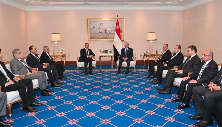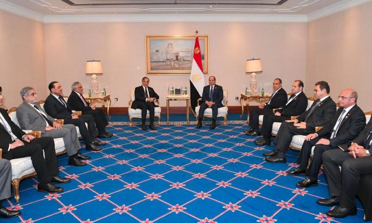 التقى الرئيس عبد الفتاح السيسي، اليوم، برئيس وزراء جمهورية باكستان الإسلامية شهباز شريف، وذلك على هامش مشاركته في أعمال القمة العربية الإسلامية الطارئة المنعقدة بالعاصمة القطرية الدوحة.